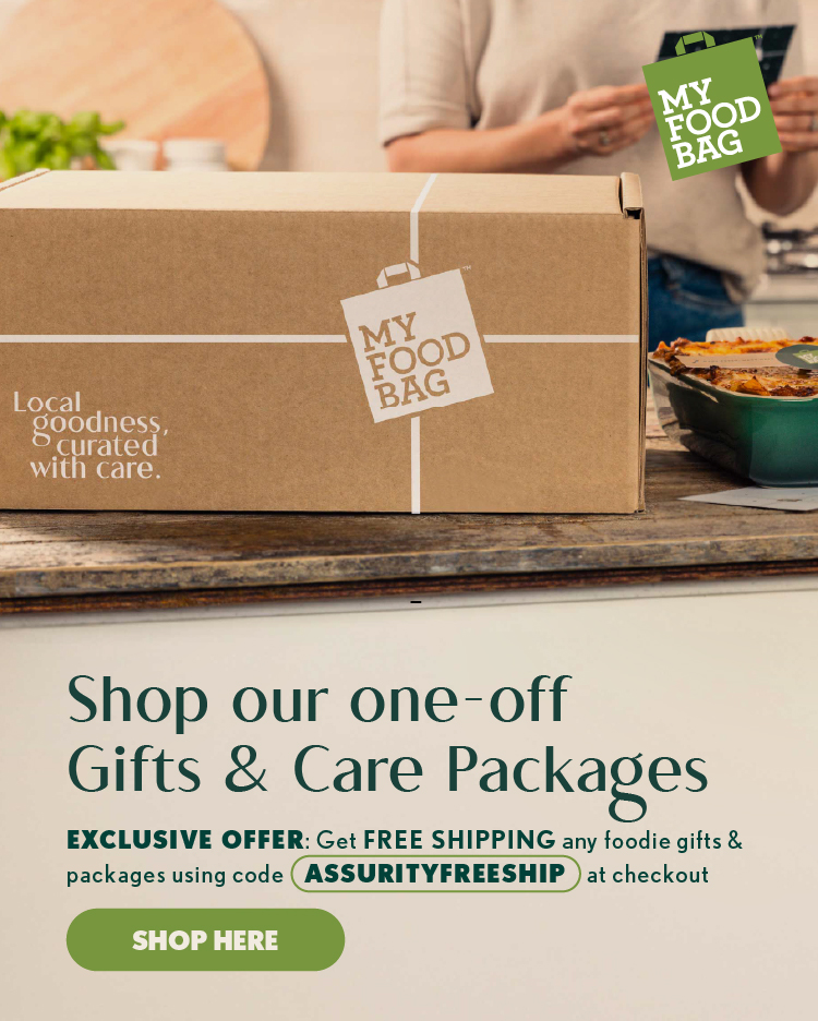 T&Cs apply. ASSURITY offer expires 11:59pm on 17 April, 2027 for deliveries up to and including 25 April, 2027. To use this offer customer must be new to My Food Bag or have not bought any My Food Bag product in the last 13 weeks. Promotion applies to the value of the customers chosen subscription meal kit and does not apply to any extras including Kitchen and gourmet meals. Promo code cannot be used on one off occasion products. My Food Bag reserves the right to withhold or deduct credits obtained using a promotion code in the event that My Food Bag determines or believes that the use or redemption of the promotion code was in error, fraudulent, illegal, or in violation of the applicable promotion code terms or these Terms. ASSURITY30 offer expires 11:59pm on 17 April, 2027 for deliveries up to and including 25 April, 2027. Promo code limited to one use per customer. Promo code cannot be used on one off occasion products. My Food Bag reserves the right to withhold or deduct credits obtained using a promotion code in the event that My Food Bag determines or believes that the use or redemption of the promotion code was in error, fraudulent, illegal, or in violation of the applicable promotion code terms or these Terms. ASSURITYFREESHIP offer expires 11:59pm on 25 April, 2027. Promo code limited to one use per customer. No promo codes created, held or intended for use in our one-off Gifts & Care Packages range are transferable to or able to be used to purchase items from our regular meal kit subscription service. My Food Bag reserves the right to withhold or deduct credits obtained using a promotion code in the event that My Food Bag determines or believes that the use or redemption of the promotion code was in error, fraudulent, illegal, or in violation of the applicable promotion code terms or these Terms.